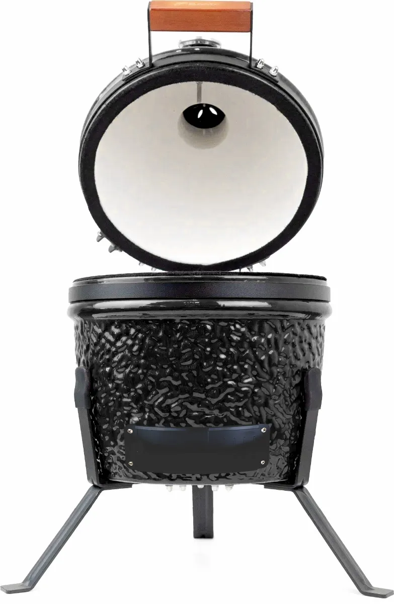 Deze 13 inch Kamado BBQ is perfect voor de beginnende barbecueër! De complete keramische barbecue is vriendelijk geprijsd en dat maakt hem ideaal om uit te proberen of zo’n keramische barbecue eigenlijk wel iets voor jou is. Het kookoppervlak heeft een diameter van 27 cm en is daarmee geschikt om 4 heerlijke hamburgers per keer te bereiden. Door zijn compacte formaat is hij ook zeer geschikt voor een kleine tuin of een balkon. Het keramische materiaal zorgt voor optimale isolatie waardoor warmte goed in de barbecue blijft. De Kamado BBQ plaats je gewoon op een verhoging of een daarvoor gemaakte werktafel, zodat je kunt grillen op de ideale werkhoogte.